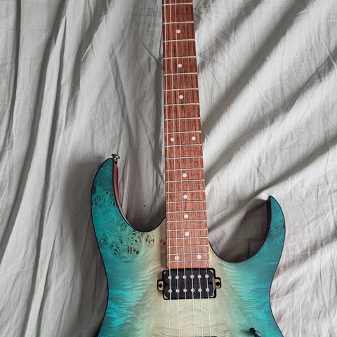 Defintivt det snyggaste du kan ha på en scen! Halsen är tunn vilket många ju gillar men för mina händer funkar det inte så därför får den tyvärr gå. Välbyggd, välljudande och skön (om man man gillar en tunn Modern C/Ibanez-hals alltså).