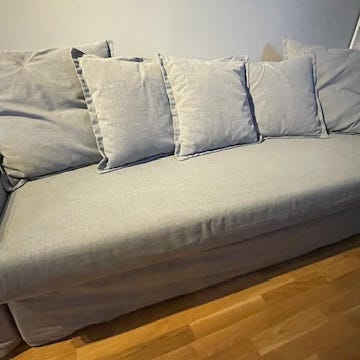 Säljer en fin bäddsoffa med tre säten. Den kan bäddas ut till en 140 cm säng, bekväm för två vuxna. Den har aldrig använts som soffa utan bara som säng ett par gånger. Den är i mycket bra skick, inga märken eller defekter alls.