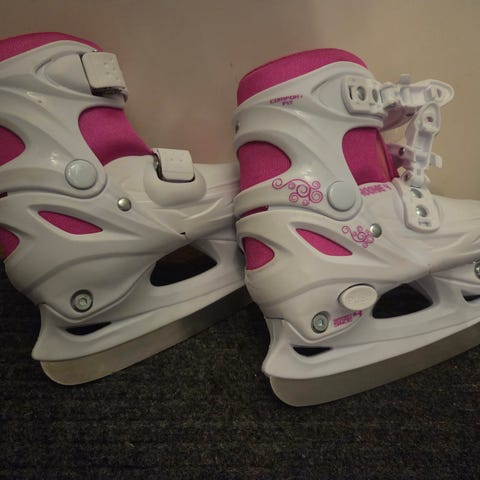 Rookie justerbara skridskor för barn i storlek som kan justeras från 34 till 37. Färgkombination vit och rosa med hårt ytterskal och vadderad insida. Skridskorna har spännen för enkel åtdragning och justering. Modellen är anpassad för barn och passar för allmän åkning på is, exempelvis i ishall eller utomhus på isbana.