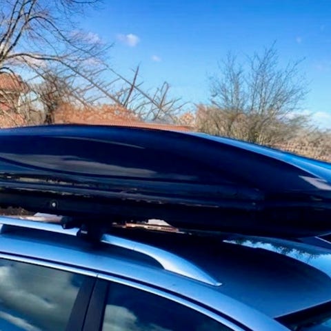 Ganska stor men låg takbox från Packline säljes. Metallic svart färg.