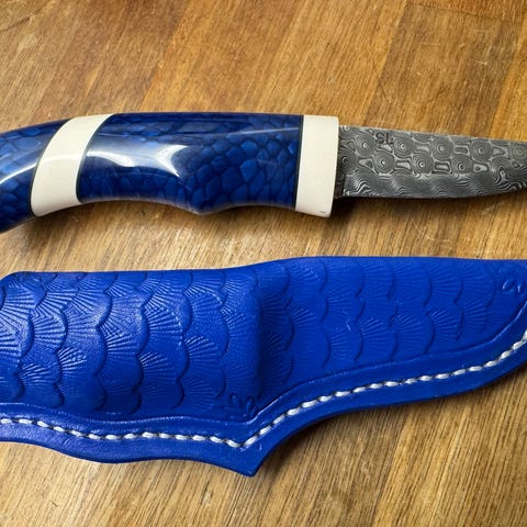 Jakt/friluftskniv med läderslida från RL Handcrafting