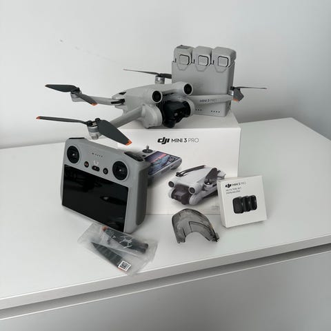 Säljer min mini 3Pro eftersom jag mest använder en Mavic 3. Levereras med fly more kit + ett extra + batteri som ger längre flygtid. Batterierna är laddade ca 11 gånger, 1/3 vid flygning, resten mest motionerade. Snäppfästet på ett batteri är trasigt på en sida, men fungerar utmärkt att använda med 1 fäste. Medföljer extra förhöjt landningsställ, 4 fasta NDfilter, 2 justerbara (vilka jag använder), extra joystick, vidvinkelobjektiv, 64gb minneskort mm. Den perfekta drönaren för den som vill ha något lättfluget. Under 250g vilket inte kräver drönarkort, endast att den registreras hos transportsyrelsen. Får flygas nära människor, vilket äldre oklassificerade drönare inte får (150m från hus och människor). Lättflugen. aldrig krachad, väl omhändertagen.