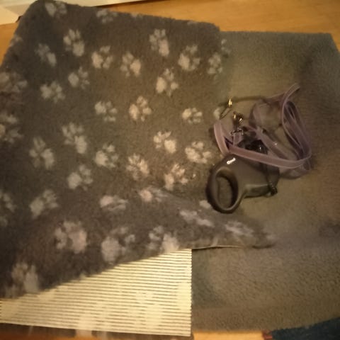 Hundtrappa i grått tyg. Trappan är utformad med två steg för att underlätta för hund att ta sig upp och ner från soffa eller säng. Passar mindre och medelstora hundar. Ytan är klädd i textil med struktur för bättre grepp. Kan placeras intill möbler eller andra upphöjda ytor i hemmet. 40 bred o 30 höjd.