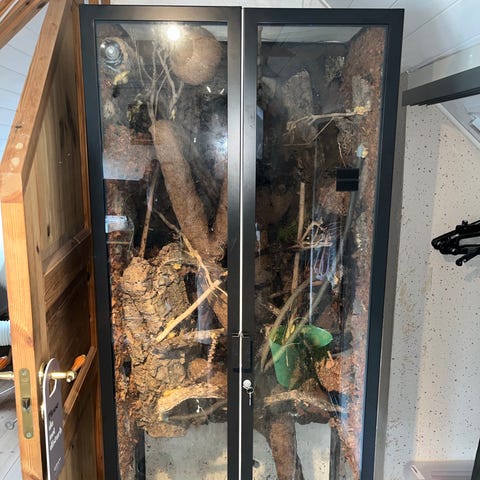 Höjden ska vara hälst 80-90cm. Bredden och djupet är inte lika viktig. Inredning är jag inte i behov av men om det ingår funkar det med.