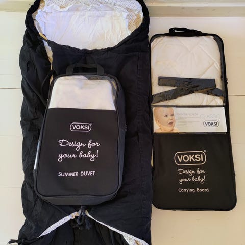 Bärbar babylift i beige färg. Utsidan är i ett enfärgat tyg med bärremmar på sidorna. Insidan är ljus med ett diskret mönster och vadderade kanter för ökad komfort. Locket är vadderat och kan öppnas med dragkedja. Passar för spädbarn som sovplats hemma eller vid förflyttning, till exempel i vagnen eller som extra liggplats på resa.
