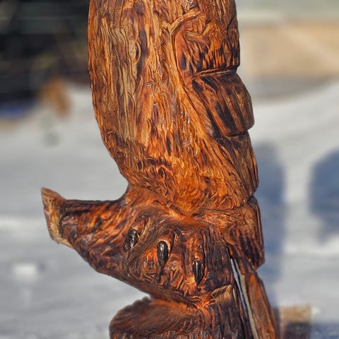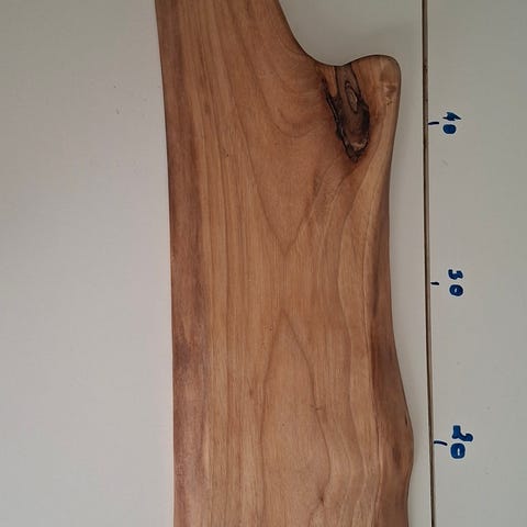 Ljusstake i trä med flera infällda ljushållare för värmeljus. Naturligt format trästycke med synlig ådring och grenform, avsedd att placeras liggande på bord, bänk eller fönsterbräda. Passar för inomhusbruk som dekorativ belysning.tillverkad av äppelträd.
