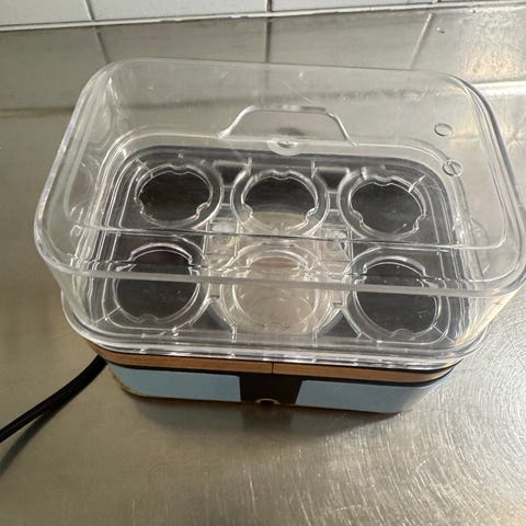 OBH Nordica äggkokare i rostfritt stål med transparent lock. Utrustad med vred för inställning av koktid och av/på-funktion. Passar för kokning av flera ägg åt gången. Medföljer måttbägare för vattenmängd.