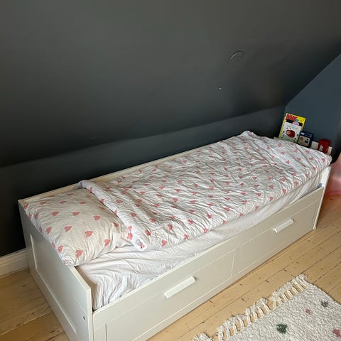 Grå Hemnes dagbädd inklusive 2 fräscha madrasser. Kungsängen resårmadrass i nyskick med bäddmadrass kan köpas till för 1000:-.