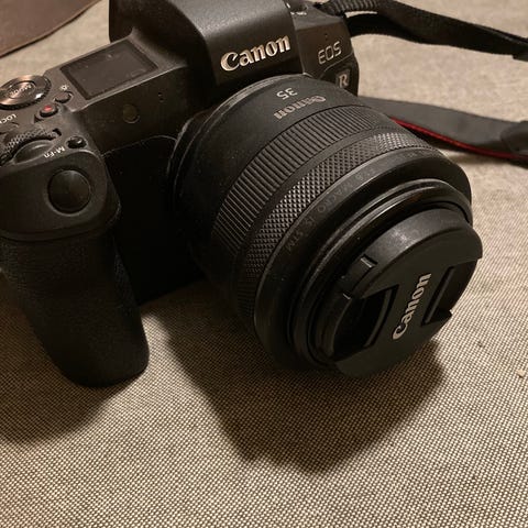 Canon EOS R6 digital systemkamera. Spegellös kamera med Canon RF-fattning.. Passar för stillbilds- och videofotografering med utbytbara objektiv från Canon RF-serie och kompatibla adaptrar.