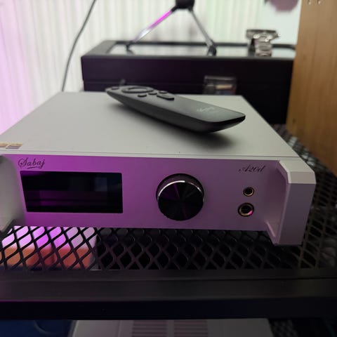 Grymt bra DAC i silverfärgat metallchassi. Enheten har analoga VU-metrar på fronten och ventilationsgaller på ovansidan.
