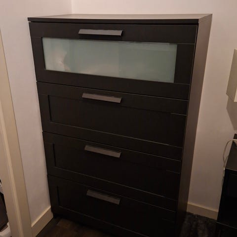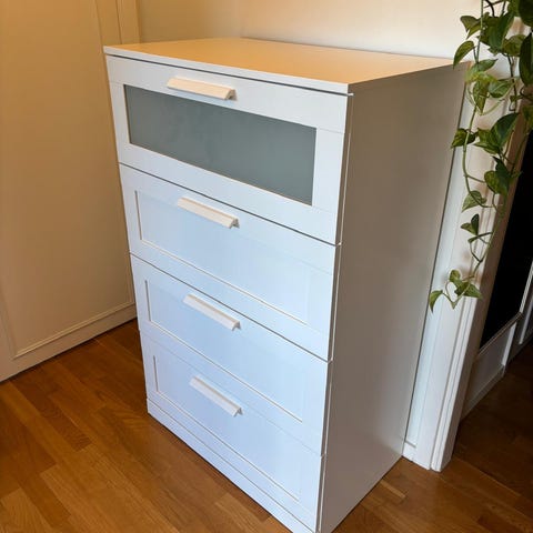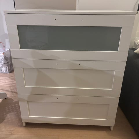 IKEA BRIMNES Byrå med 3 lådor, vit/frostat glas
