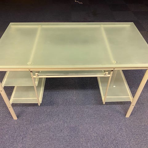 Glass Tabletop Monitor glashylla med metallfötter. Hyllan är tillverkad i glas och levereras med cylindriska fötter i metall för placering på skrivbord eller annan plan yta. Avsedd för att höja bildskärm, laptop eller annan utrustning och frigöra yta under hyllplanet. Passar exempelvis kontor, hemmakontor eller tv-bänk där extra avställningsyta behövs.