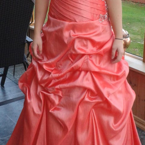 Rosa klänning, dubbla kjolar och underkjol. liv med paljetter inga ärmar.