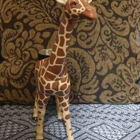 Säljer nu två dekorativa, handmålade giraffer som ger en härlig karaktär till hemmet. De har en stilren design med mörka toner och ljusa detaljer som passar de flesta inredningsstilar.
