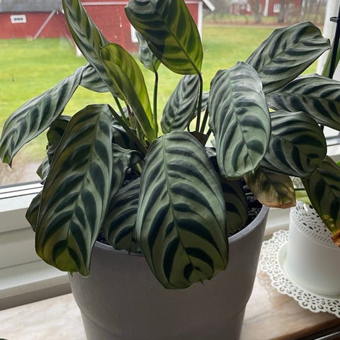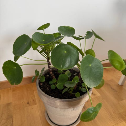 Elefant öra krukväxt med runda, gröna blad. Planterad i plastkruka med fat. Passar som inomhusväxt i rum med indirekt ljus. Kräver regelbunden men måttlig vattning och trivs i normal rumstemperatur.