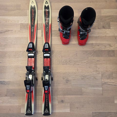 Dotterns skidor /pjäxor har nu blivit för små, visst slitage på pjäxorna, men både de och skidorna har mycket kvar att ge!