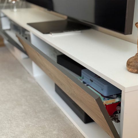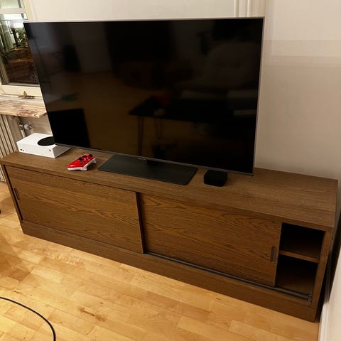 TV-bänken är från IKEA och tillhör serien Tonstad.