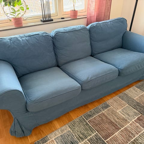 Jättefin 3-sits ektorp soffa, ej trasig/ inga fläckar. Extra uppsättning kuddfodral finns!