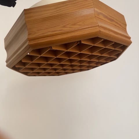 Det här är en bastulampa / saunaarmatur i trä med skyddsgaller (klassisk nordisk modell).