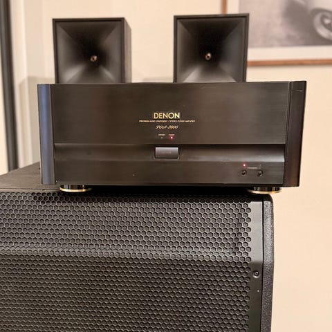 Två mycket välhållna monoblock från Denon. Köptes med tanke att användas till hemmabion men det blev aldrig av och p.g.a ändrade förhållande så säljes dom nu istället. Samtliga elektrolytkondensatorer i stegen är utbytta så dom har mycket kvar att ge nästa ägare. Även högtalaranslutningarna är utbytta mot guldplätterade som kan hantera banankontakter. Det högra i bild har en intryckning i övre vänstra hörnet, den är dock knappt synlig framifrån. i övrigt så ser dom mycket bra, några repor på sidan men inte heller dessa är synliga sett famifrån. Det går givetvis att förbättra med lite färg om man skall ha dom till att stå öppet. Specifikationer kan hittas på: https://www.hifiengine.com/manual_library/denon/poa-4400.shtml