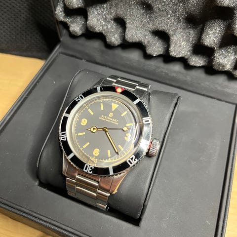 Klockan mäter 37mm och har ett VK63 mecakvarts-urverk