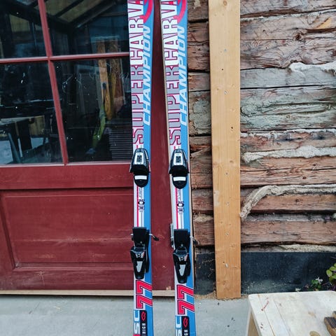 Två par skidor från Nordica samt Salomon pjäxor och en skidhhälm från Sweet.