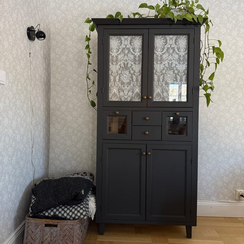 Svart badrumsskåp för kattlåda, finns även plats för annan förvaring. Skåpet har två st hyllplan men vi har valt att enbart använda ett, men det finns om man önskar