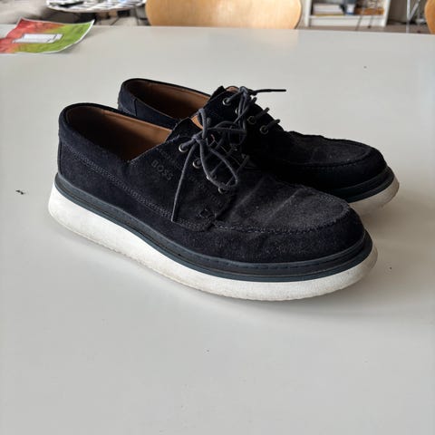 Svarta seglarskor i mocka. Fint skick. Endast använda 2-3 gånger men dessvärre för stora för mig. Låda och skopåsar följer med.