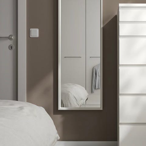 IKEA Nissedal spegel i vit färg. Rektangulär helkroppsspegel med vit ram som kan användas i hall, sovrum eller vardagsrum. Spegeln är avsedd för väggmontering och har upphängningsbeslag på baksidan.