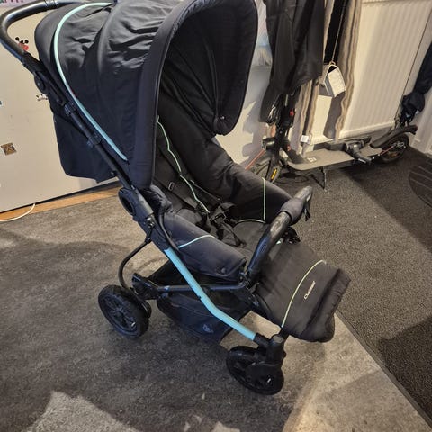 Emmljunga med babylift åkpåse paraply regnskydd skötväska sittdyna kommer från djur o rök fri hem