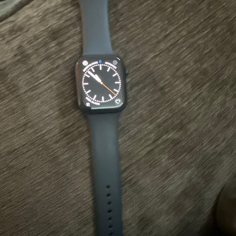 Modellen är Apple Watch Series 7 (GPS) med 41 mm i aluminium, modellnummer MKNF3TY/A.