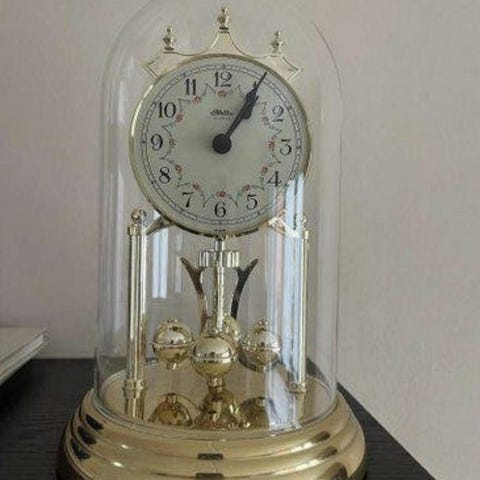 Klocka med pendel och glaskupa. Perfekt som inredningsdetalj.