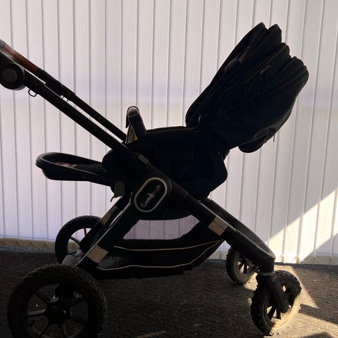 Endast sittdel till (flat), åkpåse och regnskydd medföljer.