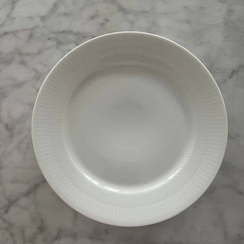 Tallrikarna har det välkända reliefmönstret med stiliserade veteax och har en glansfull glasyr som ger dukningen en elegant känsla.