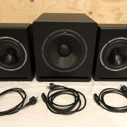 Aktiva, maffiga monitorer i välanvänt skick. Spelar bra, starkt och djupt. Kan användas både i studion eller som exempelvis tv-högtalare.