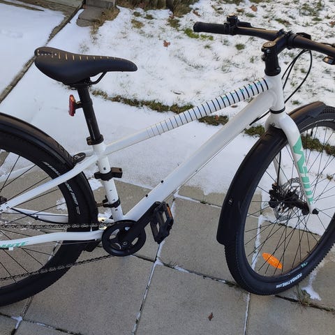 En fin och lättkörd ungdomscykel som rullar bra både på astfalt och terräng. Växlar, hydrauliska skivbromsar samt plingklocka fungerar felfritt.