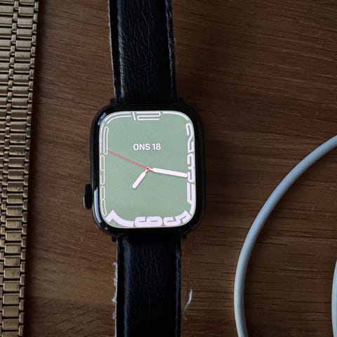 Inköpt sept 2025 och är helt repfri. Svart aluminium. Brunt läderarmband. Originalladdare. Väldigt sparsamt använd!