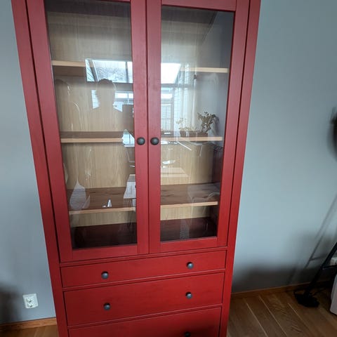 Ikea Hemnes Vitrinskåp i jätte fint skick med 3 lådor och stort utrymme bakom glasen.