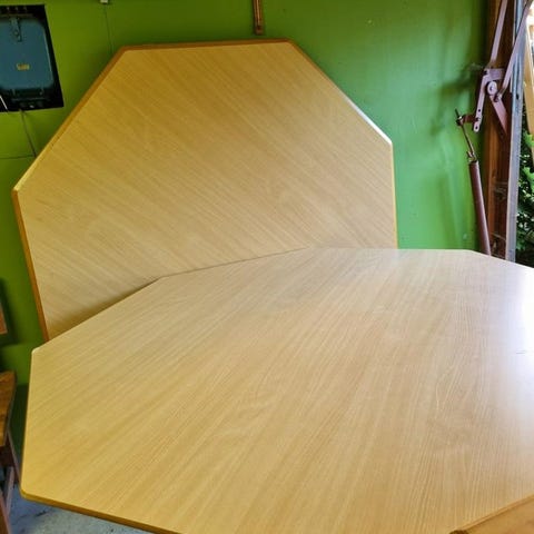 Praktiskt skrivbord eller bordsskiva i ljus träfärg. Stabil och i gott skick, passar perfekt som arbetsbord, hobbybord eller till studentrum/kontor. 3st skivor. En extra bordsskiva ingår 80x80cm.