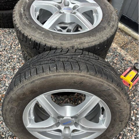Säljer en komplett uppsättning original volkswagen vinterhjul Polo som passar seat, skoda,audi med bultmönster 5/100