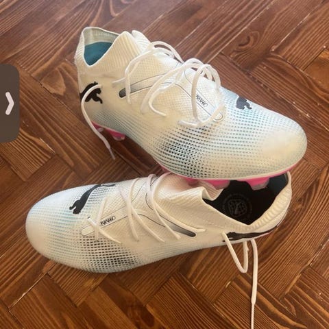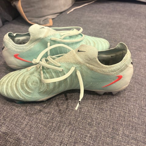 Nike fotbollsskor i storlek 38. Skorna är vita med detaljer i neonfärg. Dobbar anpassade för spel på gräsplan. Snörning framtill för justerbar passform. Lämpliga för fotbollsträning och matchspel. Aldrig använda.