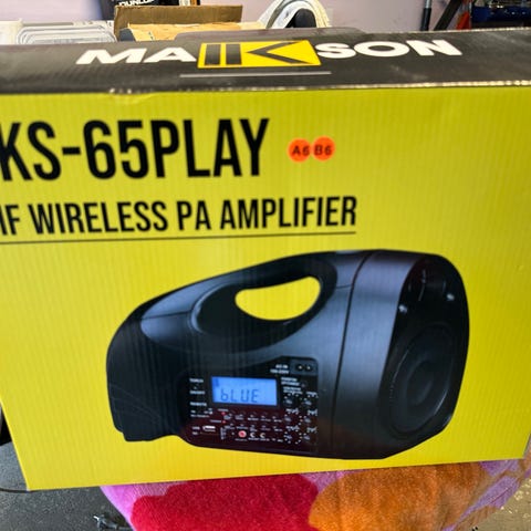 Arbetsplatsradio från Makita modell DMR300. Drivs med på 12-18V eller nätadaptern. Bluetooth, AUX och USB-kontakt. Väderskydd och flasköppnare (?)