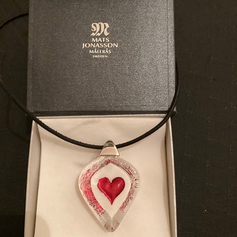 Stort vackert röd Baccarat Hjärta i Kristall från Frankrike. Svart halsband i siden. Går även att sätta på guldhalsband eller annat. Orginalask och Baccarat skyddspåse medföljer. Knappt använd, endast 1-2 gånger. Storlek är 4 x 4 cm. Som ny och är jättefin och iögonfallande ❤️