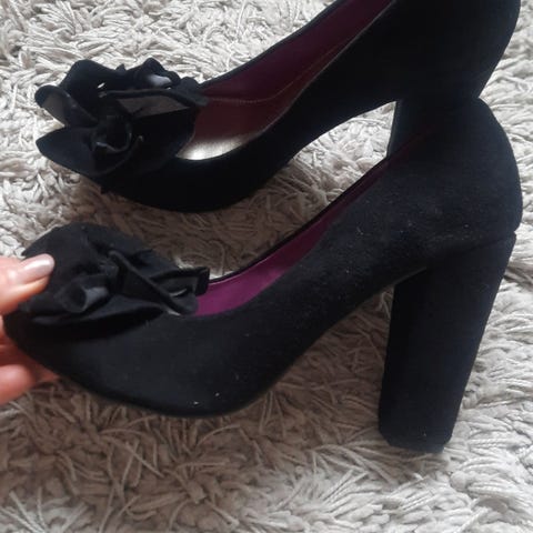 NA-KD klackskor i röd färg, storlek 38. Modellen har hög blockklack och spetsig tå. Skorna har dekorativa volangdetaljer över ovandelen. Passar exempelvis till fest eller andra tillfällen där man vill bära klackar.