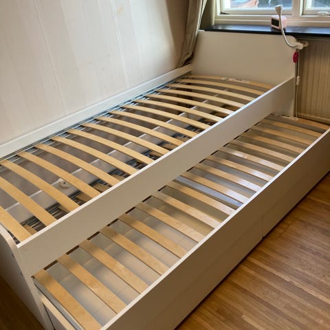 Barnsäng Hoppekids ECO dream 160x70cm med stege. Inklusive madrass. Gott skick men märken finns på ramen. Nypris ca 4300kr utan madrass.