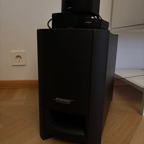 Säljes pga. nytt inköp. BOSE fjärr/multikontroll är med, ej med på bilden. Riktigt bra ljud och djup bas som enkelt går att ändra på. Perfekt system att använda för att lyssna på musik också.