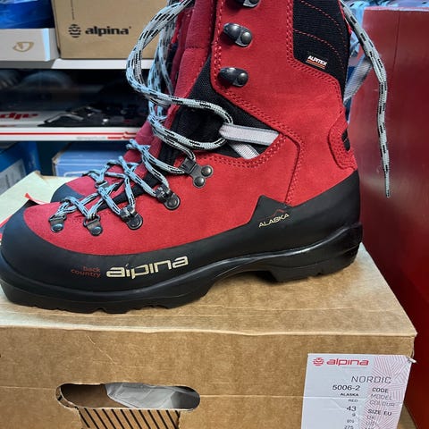 Nästan nya Alpina Alaska pjäxor för turåkning / långfärdsskridsko med Rottefellas nya Xplore-system i stl.44. Använda några få gånger...men de är för små.