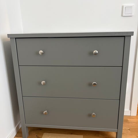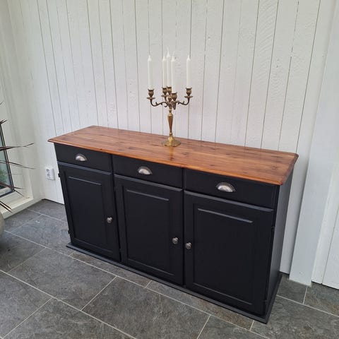 Mycket fin byrå som i vårt hem stått i hallen men fungerar lika bra som tv - bänk eller klädbyrå. Är i mycket fint skick med något skrap märke upptill som går att olja till.