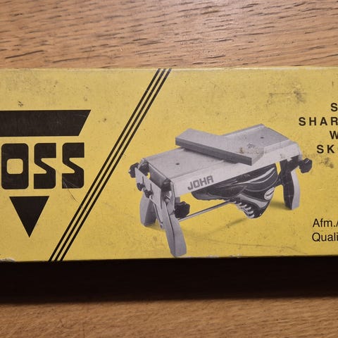 Skridskor i försåld originalkartong av B&O Libergs Fabriks AB Eskilstuna, tillverkade av sabeltillverkaren E. Svalling, Eskilstuna. Tillverkningsår runt sekelskiftet 1900. Märkt 30 cm. Fattas läderremmar. Skickas ej! 076-3402408.