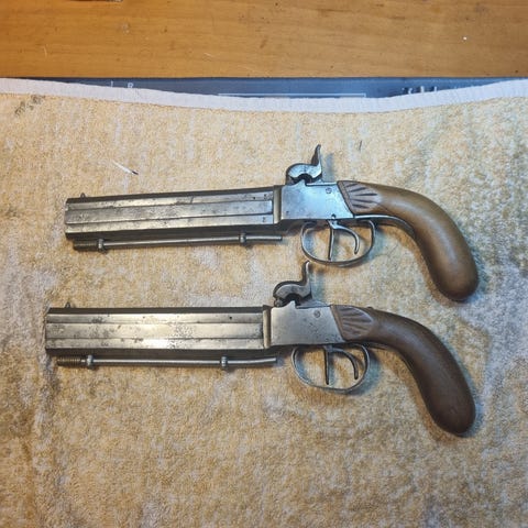 Två dubbelpipiga, en tysk och en okänd. Lite olika skick